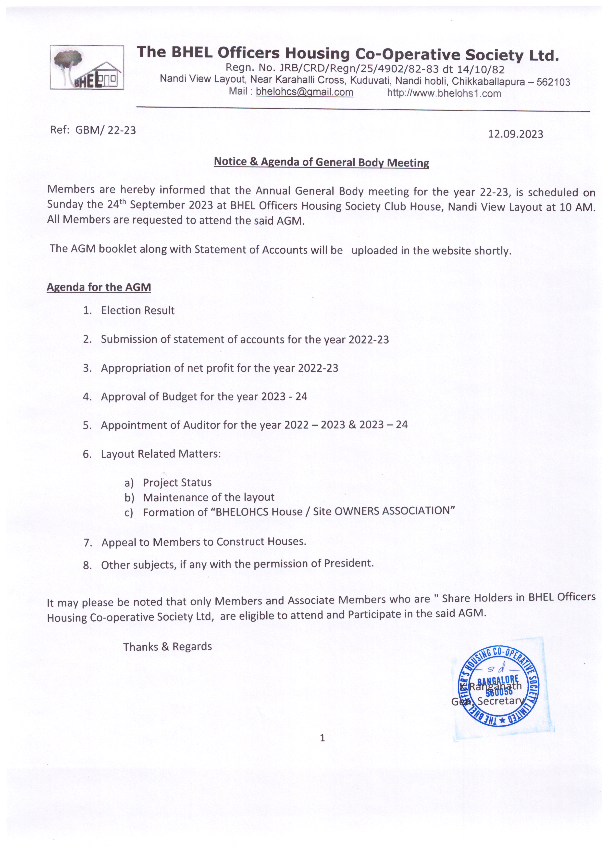 1 | ANNUAL GENERAL BODY MEETING – 19-12-2021 @ 11AM | Click Here |